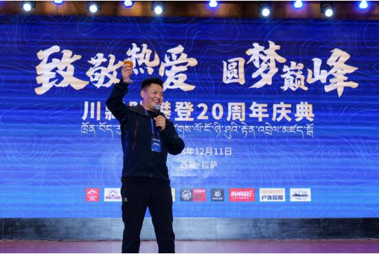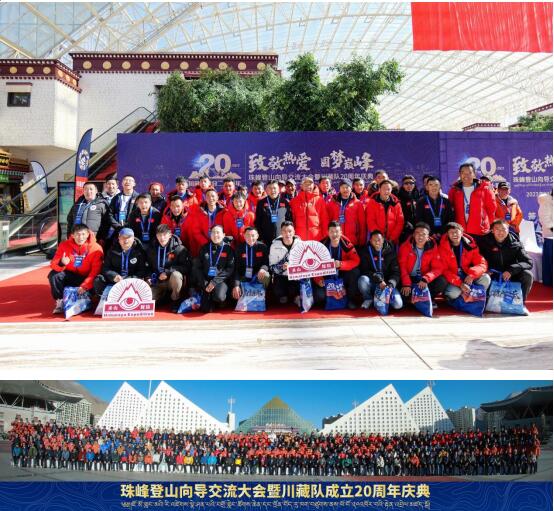 在晚上举行的“川藏队成立20周年庆典”晚宴上,苏拉王平携刚刚从中国登山队集训营归队的6名队员及全体向导盛装亮相,川藏队举全队之力为新一届国家登山队贡献了6名年轻骨干力量,他们分别是蒋扬、三基格西、旦珍、三朗斯旦珍、泽让旦真、泽朗东作。四川省登山户外运动协会会长刘建等领导为川藏队全体高山向导颁发奖牌及奖品,川藏队想“老朋友”凯乐石送上了的品牌赞助续签大礼,也收获了“山力士”“肯道尔”“雪线之上”等新老朋友的坚定支持。