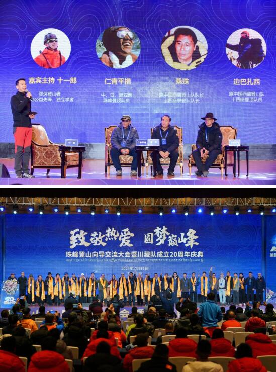 2023年12月11日,以“致敬热爱,圆梦巅峰”为主题的“珠峰登山向导交流大会暨川藏队成立20周年庆典”在拉萨圣地天堂洲际大饭店隆重举行。此次大会由川藏队发起主办,肯道尔、户外探险、雪线之上协办,凯乐石、山力士移动照明等优秀户外品牌大力支持。四川、西藏、青海、新疆等各省区登山户外运动协会携手助力,川藏队的家乡四川省阿坝州特别委派州文体旅考察组助阵大会,与拉萨市体育局等各方机构现场进行文旅品牌推介并互动、交流。初冬的圣城拉萨,因为雪山、因为攀登,充满了激情、欣喜和暖意。