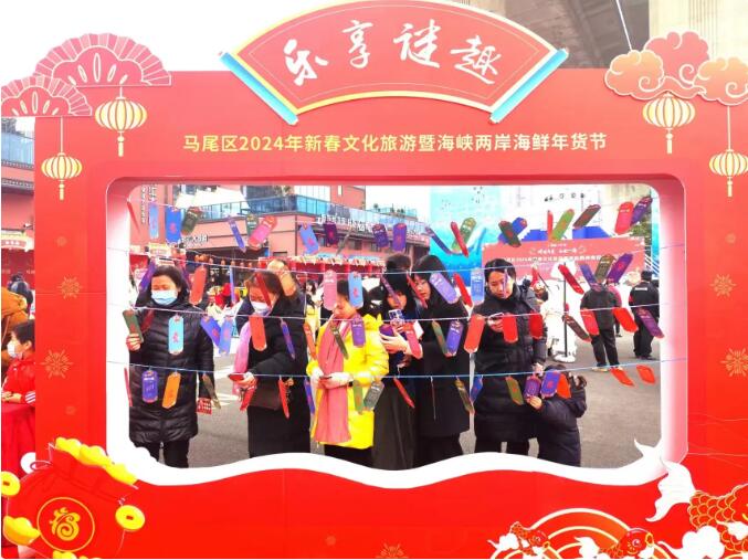 活动舞台上连续三天为大家奉献精彩的“两岸”风情文艺汇演。猜灯谜、扎花灯、敲锣、投壶、糖画……多项非遗年俗活动吸引了众多男女老少的参与,让大家感悟中国传统节日承载的深厚文化内涵。马尾渔人广场在各色灯火的照耀下散发出独特的网红地标魅力,处处洋溢着喜庆的节日气氛。