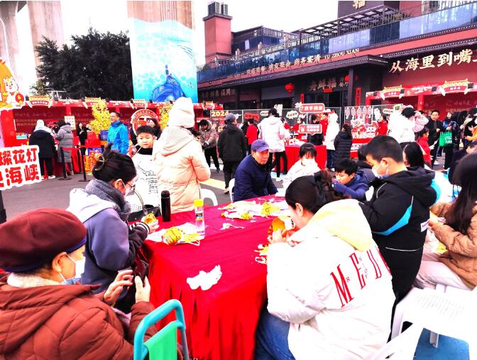 活动现场展销了海鲜预制菜、台湾美食、非遗小吃等等各色美食小吃,让游客们沉浸式感受“小时候”的年味!马尾的水产品预制菜产业极大延展和丰富了新时代“菜篮子”工程的内涵。