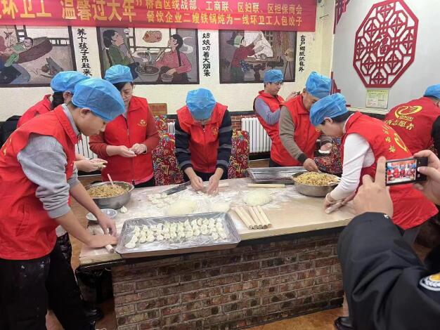 二嫂铁锅炖餐饮企业为一线环卫工人包饺子