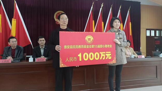 2024年,是惠安县亮亮教育基金会爱心敬老金发放的第15年。2024年,基金会提取超过1000万元爱心敬老金,发放给惠安部分村镇60岁以上、没有退休金的老年朋友。