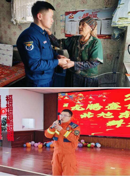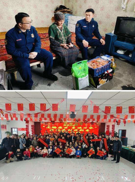 扶贫帮困显关怀,走访慰问暖人心。走访慰问贫困户,为其送上大米、油、水果等慰问物品,慰问期间,消防员与老人亲切地聊起家常,询问其日常生活、身体状况等,使其切实感受到消防救援队伍的温暖和关怀,老人脸上也露出了灿烂的笑容。指战员一边为老人粘贴春联、福字并讲解春联的内容,一边为老人宣传党的好政策和农村冬季消防安全要点、春节期间家庭防火的重点注意事项。临别之际,老人握着消防救援人员的手久久不愿松开,并表示感谢消防队伍对他们的关心和照顾。