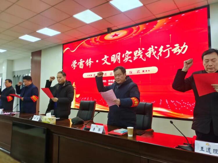 在当天的启动仪式上,全体与会人员还合唱了《学习雷锋好榜样》革命歌曲,把启动仪式推向了高潮,随后举行了“学习雷锋,文明实践我行动”集体宣誓,大家不约而同的举起右手庄严宣誓:学雷锋精神,做雷锋传人,自觉做学习雷锋精神的学习者、倡导者、践行者、推动者,进一步弘扬雷锋精神,把有限的生命,投入到拼状态、比实绩,“三问四有”和无限的‘为人民服务’中去,争当行业摸范,争做学雷锋标兵。