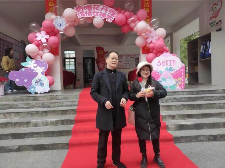 每年的三八妇女节,他率领行政班子,带着男教师给每个女教工送上一束鲜花,一杯鲜奶。
