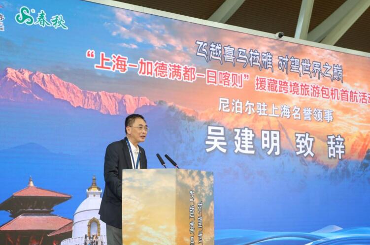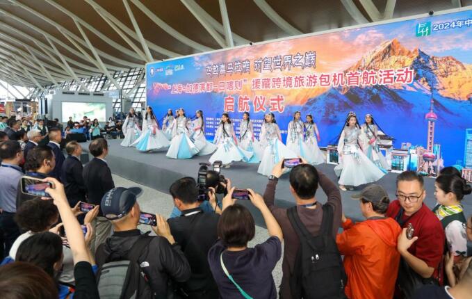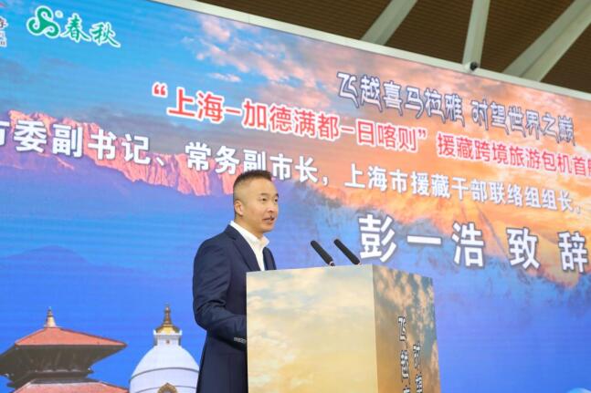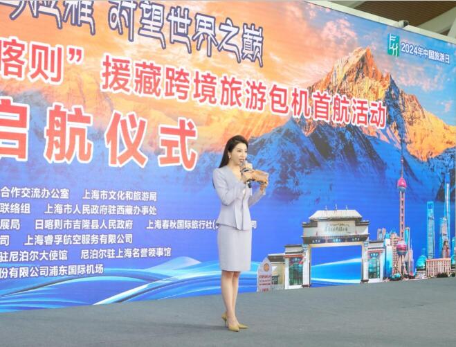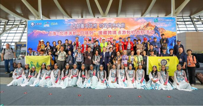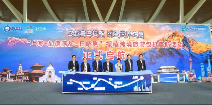 5月18日下午,2024年“5·19中国旅游日”前夕,“上海-加德满都-日喀则”援藏跨境旅游包机首航活动启航仪式在浦东机场T2航站楼举行。上海市文化和旅游局副局长、一级巡视员张旗,上海市人民政府外事办公室二级巡视员杨劼,日喀则市委副书记、常务副市长、上海市援藏干部联络组组长、上海市人民政府驻西藏办事处主任彭一浩,尼泊尔驻上海名誉领事吴建明,上海市人民政府合作交流办公室对口支援处处长曾勇,上海国际机场股份有限公司浦东国际机场党委书记房颂华,春秋集团总裁王炜等领导和相关单位同志,以及游客、媒体代表出席活动。随着仪式上中尼跨境旅游线路“一路点亮”,105名上海游客登上首班援藏跨境旅游包机,从上海出发飞赴尼泊尔首都加德满都,开启独特的援藏跨境游之旅。