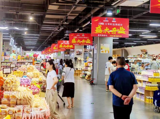 近日,位于武汉市江夏区光谷青年汇的万果旺连锁超市正在试营业,活动现场人头攒动、客流如织、异常火爆。超市针对武汉人群特色,商品也特别突出差异化,不仅吸引了大学生群体驻足,还吸引了众多周边居民挑选购买。超市货架上的商品琳琅满目、排列整齐,凭借全新的面貌、贴心的服务和物廉价美的商品赢得了顾客们的一致好评和高度赞扬。