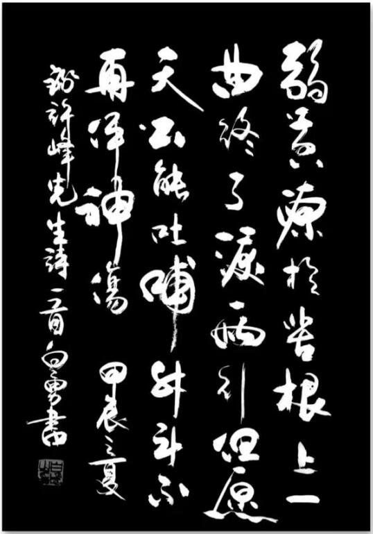 这首诗由著名诗评家邓三君老师点评,著名书法家、解放军总部大校白勇先生不但进行了诗、评唱和,还特地挥毫,写下了这首足以传世的诗歌、书法作品,让诗歌又增加了超强的人文色彩。我们先来看看原作、原评。