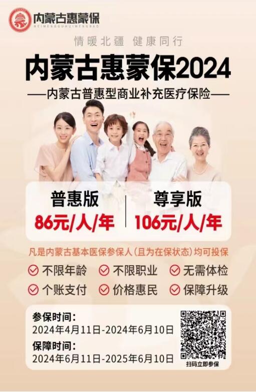 此次“内蒙古惠蒙保2024·点亮星空”关爱自闭症儿童公益广场舞大赛的成功举办,不仅展现了内蒙古各族人民团结奋进、积极向上的精神风貌,也彰显了社会各界对自闭症儿童群体的深切关爱和大力支持。此外,内蒙古惠蒙保还提醒广大市民注意参保办理截止时间。内蒙古惠蒙保2024产品的参保通道将于6月10日24点关闭,内蒙古自治区及所辖各地市城镇职工基本医疗保险、城乡居民基本医疗保险的在保参保人员均可通过关注“内蒙古惠蒙保”微信公众号进行投保。基础版仅需86元/人,尊享版106元/人,即可享受到全面医疗保险保障。