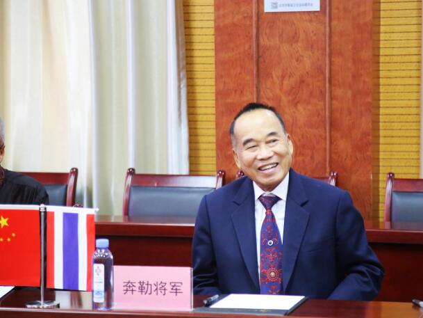 泰国五星上将、泰中关系协会主席奔勒将军GEN BOONLERT 出席会议并在讲话中强调,泰中两国有着深厚的友谊,亲如一家,泰国美食和中国美食都是世界上又好吃又好看的美食,文化深厚,历史悠久。前不久,在北京举办的泰中美食文化节,向中国人民呈现了泰国美食的精粹和泰国民族舞蹈,起到了很好的社会效益,大大促进了两国人民的美食文化、旅游和贸易交往。今天,在北京启动了中泰美食文化节暨中泰美食国际大奖赛将在曼谷举办,我期待着中国美食文化在泰国大展宏图,更希望我能给中华美食名厨颁发金奖。最后,奔勒主席祝大家“六一节快乐!”。
