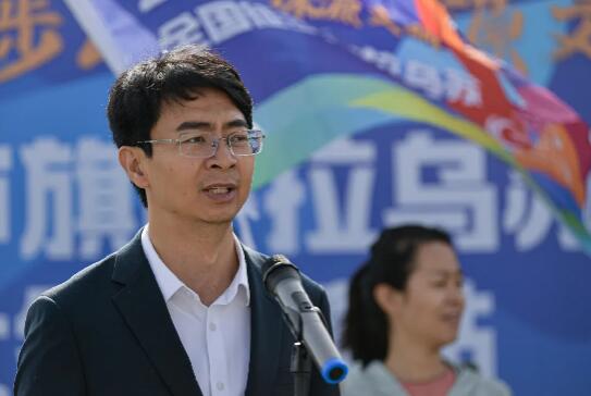 乌审旗文化和旅游局党组书记、局长张军为旅游直通车授旗