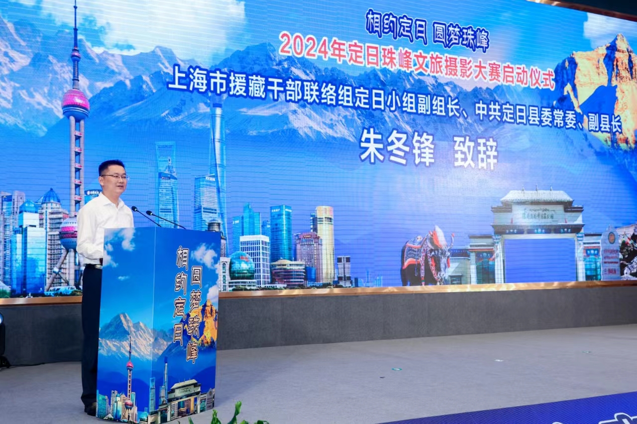 上海市援藏干部联络组定日小组副组长、定日县委常委、副县长朱冬锋出席启动仪式并致辞,他诚挚地邀请全国摄影家、摄影旅游爱好者以及市民群众走进定日,共赏极致风光,共品藏族文化。
