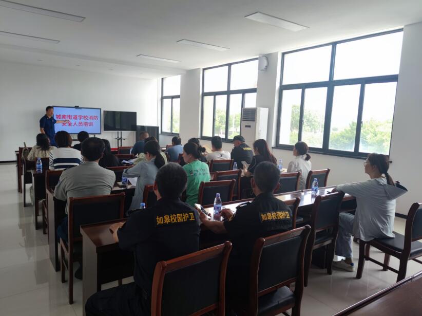 为提升教职工火灾防范、初起火灾扑救以及引导疏散能力,营造“人人讲安全,个个会应急”的良好氛围。6月13日下午,如皋高新区教育管理中心分管负责人、各校(园)分管安全负责人、科室负责人、校园保安各1人于高新区中职消防中队进行消防安全培训。