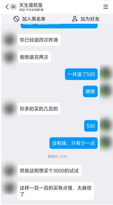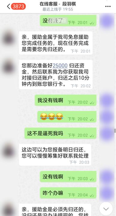 在首次尝试充值购买并顺利收到回款后,林女士在群成员鼓动下再次进行了第二次操作,此时,客服告诉她,由于他的操作失误导致资金异常,需要进行数据修复。客服向她解释,“数据修复”就是补单,只有补款下单成功后,才能把前面的钱一并退还。客服推荐林女士申请平台内的“资金援助”,林女士用所谓的“平台援助金”,其实就是她自己贷款来的钱完成了补单,在退费时又被要求先还清“平台援助金”,林女士担心前面投入的钱都打了水漂,只好再凑钱还款。