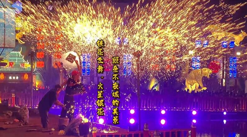 打铁花升级四个炉子同时演出