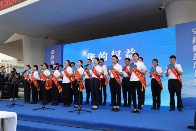 启动仪式宣誓环节,由多家单位组成的19名代表整齐划一、铿锵有力的誓言响彻全场:我们承诺...,我们保证...,以此誓词,彰我金融业之志,愿与曲靖民众共绘金融和谐之图,共创繁荣未来。