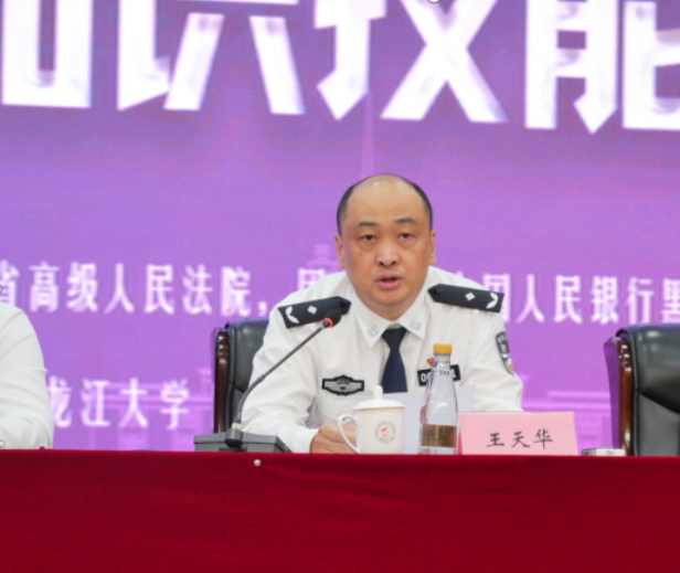 黑龙江省公安厅刑侦总队总队长王天华在强调反诈宣传工作的重要性,提出了“全民反诈、全社会反诈”的倡议,希望大家将大赛中的所感所学应用到实践中去,日后积极投身到各类反诈志愿服务活动中。