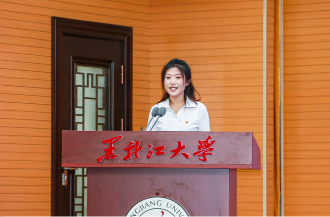黑龙江大学新闻传播学院2022级李佳芯作为参赛学生代表宣誓严格遵守比赛规则,坚决服从主办方安排,秉持公平竞争之原则,充分展现我们的知识与技能。并将以此次比赛为契机,把所学的反诈知识带回学校、带回班级,广泛传播给更多同学,促使大家共同增强反诈意识,携手营造安全、和谐的校园环境。