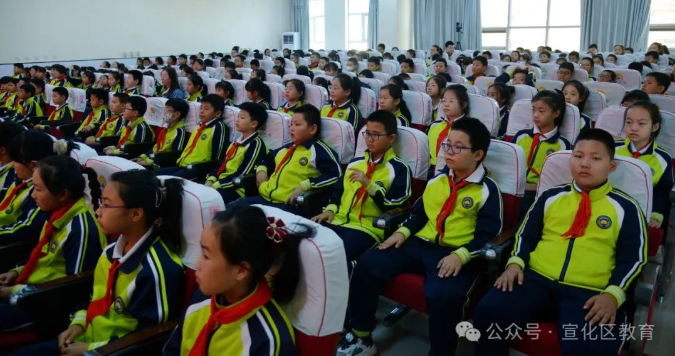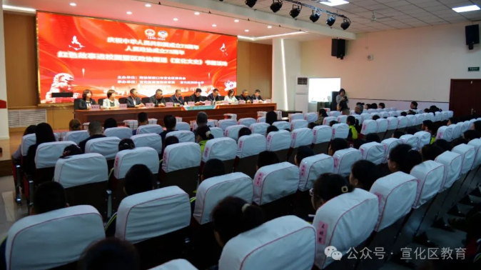 宣化区政协党组书记韩瑞华、副主席李世河、政协秘书长刘旭龙、办公室主任孙安、文史委主任白桂萍;区教育工委副书记赵春君、教体局班子成员李阳出席活动。宣化一中副校长战勇、鼓楼小学党总支书记苏力海,校长康雅玉及区属部分中小学德育主任、鼓楼小学学生代表共计170余人参加活动。