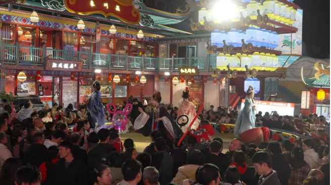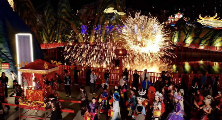 非遗打铁花,1600度的铁水在击打下绽放出绚烂的火树银花。