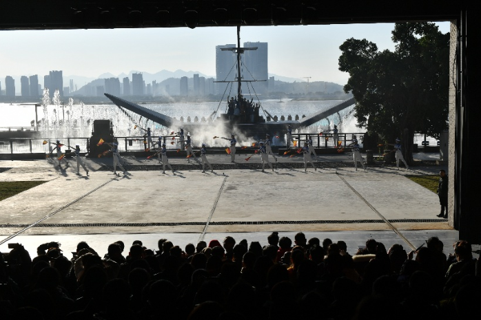 在福州马尾中国船政文化城,作为国内首个折叠渐进式剧场,《最忆船政》实景演艺项目巧妙地将船政空间特色与现代科技融合,通过虚拟及增强现实、浸入式3D Mapping、全息投影等前沿技术,为观众打造了一场“白+黑”“内+外”全天候的动态交互式观演体验。