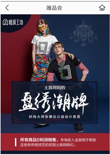 适逢国际慈善日,也是第二个中华慈善日,唯品会独家打造的电商公益平台“唯爱工坊”推出“土族阿妈的盘绣潮牌”公益专场,全网首发由时尚大师张肇达设计、土族阿妈们纯手工盘绣的时尚单品。所有商品零利润销售,同时唯品会补贴运营和物流成本,并将专场收入全部用于帮助这些有传统技艺的土族阿妈们。