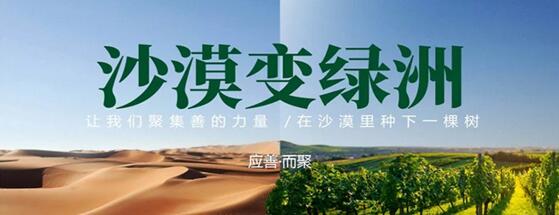 沙漠变绿洲已不再是美好的愿望,而是我们这一代人终将实现的蓝图,让我们聚起善的力量,在沙漠里种下一棵树。