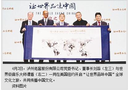 2017年4月2日,泸州老窖·国窖1573“让世界品味中国”纽约之夜艺术晚宴在美国纽约盛大举行。此次活动作为泸州老窖全球文化之旅的第一站,借助全球通用的语言和形式,诠释和传播酒文化这一来自古老中国的智慧与文化结晶,展示了中国白酒的独特魅力,并进一步推动中国白酒融入全球酒精饮料的市场格局。