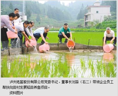 根据向田村的气候、土场、水质等特点,泸州老窖打造稻田养鱼扶贫项目,从“泸州老窖爱心基金”里拨付20万元发展100亩稻田养鱼,分批投放裸鲤、草鱼等鱼种,种植优质水稻苗种,壮大村集体经济。2017年,该项目预计亩产240公斤优质水稻,试点成熟后将推广至全村1300亩水田。
