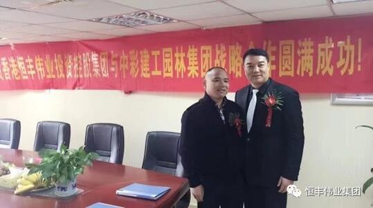 香港恒丰伟业集团董事局周传雄主席和中彩集团朱董事长亲切合影