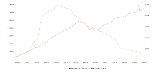 从图中可以看出09年四季度以后个人收入开始重新上升,而债务余额则持续下降。
