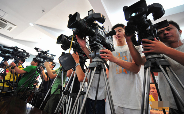 6月8日,在厦门市人民政府新闻发布会现场,媒体记者正在采访。新华社记者魏培全摄