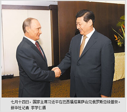 本报巴西福塔莱萨7月14日电 (记者杜尚泽、张卫中)当地时间7月14日,国家主席习近平在巴西福塔莱萨会见俄罗斯总统普京。