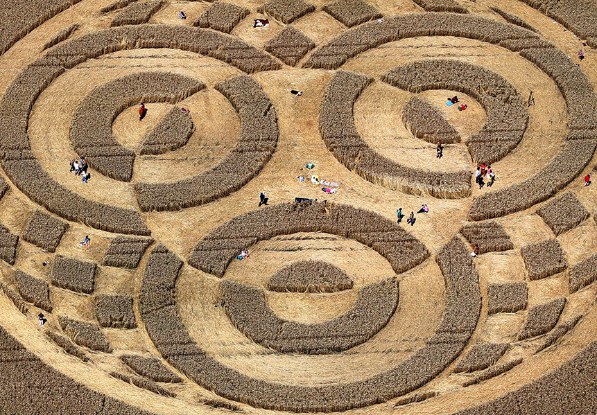 据媒体报道,一名热气球爱好者几天前发现了这处“麦田怪圈”,吸引了数百游客前来一睹其容。目前尚不知该“麦田怪圈”是何人所为。新华社/法新