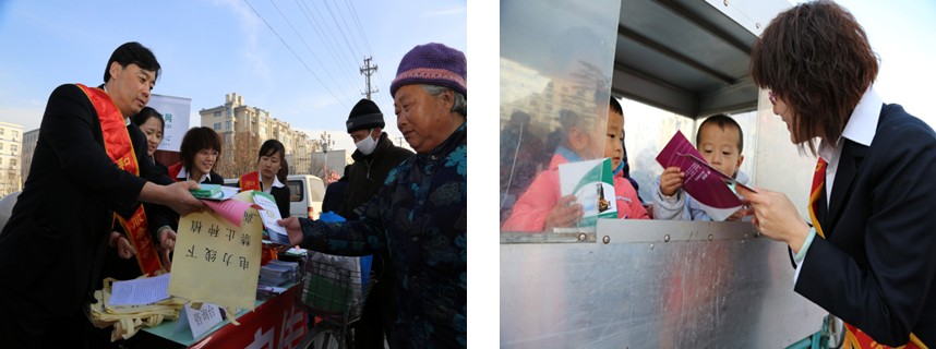 连日来气温逐步下降,活动当日天气很冷。身穿工作服,肩挎绶带的宣传人员脸上却始终洋溢着暖人的笑容。到此次活动结束共发放传单材料800余份,接受客户咨询160余人,征求客户意见46条。