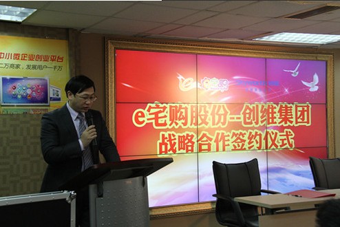 仪式上,e宅购董事长兼CEO谭远程、创维商用显示部副总裁党文宝先生登台,正式签署战略合作协议,预示创维集团正式成为e宅购第二代微媒体创富机的硬件定制合作伙伴。