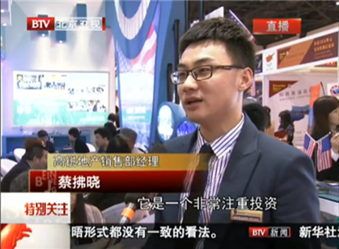 北京BTV记者也对高锐地产销售经理蔡拂晓进行了采访。蔡拂晓告诉记者,海外地产投资已经成为普通大众资产升值保值的主要渠道,高锐地产与往届房展会展出的英国房地产项目中的学生公寓以包租五年收益10%房产相对比,本次展会美国的多个地产项目收益大多也都保持在百分之六左右深受广大客户的欢迎。随着美国经济的复苏、澳洲贷款利率的调低以及人民币对澳元汇率的变动,海外地产都正值最佳收获期。
