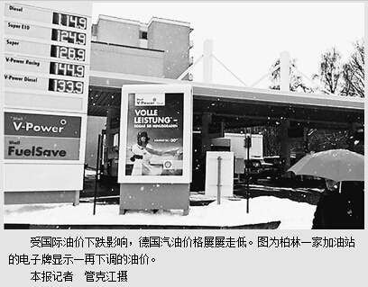 德国央行行长魏德曼日前表示,对德国来说,油价下跌相当于实施了一个小型经济刺激方案。欧洲决策层面对低油价的看法从中可见一斑。德国基尔世界经济研究所斯特凡·科斯教授对本报记者说,低油价有望助力德国经济在2015年提速,同时欧元区经济今年预计将增长1.2%,明年为1.5%。