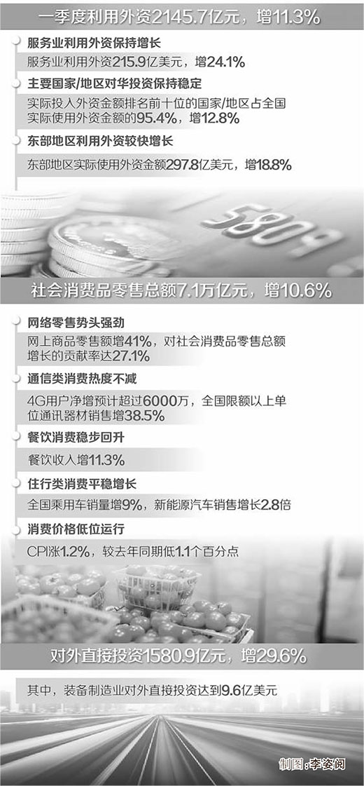 一季度利用外资同比增11.3%,对外投资同比增近三成