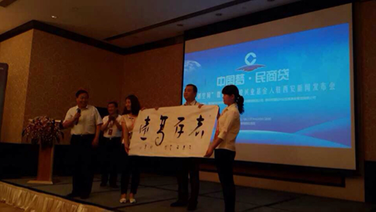 为了感谢来自全国各地支持民商贷的地方政府丶机构,由国投兴业基金慈善会主席丶陕西省民间招商协会名誉会长丶陕西皇城书画研究院院长陈聆亲自为嘉宾赠送字画