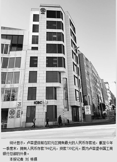 中国工商银行卢森堡分行总经理刘刚向本报记者介绍说,工行卢森堡分行成立于1999年,与中国工商银行(欧洲)有限公司同为工行在卢森堡的经营机构。自2010年以来,已在9个国家设立了15个机构,6个分行,发展势头迅猛。2014年9月16日,中国人民银行正式授权中国工商银行卢森堡分行担任卢森堡人民币业务清算行。