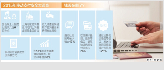“2015年通过社交账号诈骗、信用卡提额、消费退款、伪基站发送诈骗短信等欺诈手法较为突出,移动支付安全应成为支付产品客户体验中首要考虑的因素。”中国银联风险控制部总经理袁晓寒说。