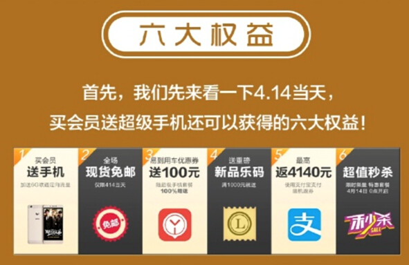 乐视,一个手机行业一年级的新生,但它用行动告诉我们什么叫“后来者居上”,还告诉我们什么叫“有钱任性”。乐视给我们的感觉永远是“要么不玩,要么就玩大的”!去年的919、双11、双12连续三个月,乐视的福利让无数乐迷疯狂,抢购到手软。如今,乐迷的又一次狂欢节就要来了——414硬件免费日。像此前一样,福利依旧多到让人眼花缭乱,在其即将到来的最后一天,小编为各位送上414最全抢购攻略——你来或不来,福利就在这不离不去!