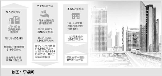 前四月,在房地产市场量价齐升的同时,非重点城市商品房待售面积也持续增加
