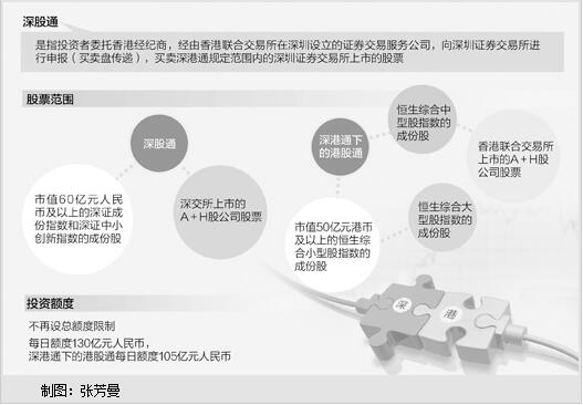 投资额度方面,深港通不再设总额度限制。深港通每日额度与沪港通现行标准一致,即深股通每日额度130亿元人民币,深港通下的港股通每日额度105亿元人民币。双方可根据运营情况对投资额度进行调整。