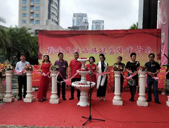 2018年6月3日,黔金王江西南昌旗舰店盛大开业,由深圳蓝海环球财富管理有限公司董事长、黔金王的品牌创始人桑总,黔金王江西运营中心的腾总,江西珠宝协会众多知名人士以及南昌珠宝首饰大伽等重要领导及嘉宾合影并剪彩,共同见证了本次开业的盛况时刻。