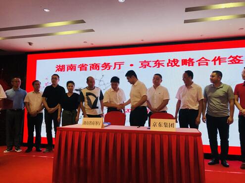 7月30日,“京东•湖南老字号旗舰店”上线仪式在长沙芙蓉华天举行。湖南省商务厅党组副书记、副厅长肖彬、京东集团公共事务部高级总监李贺明、九芝堂健康产业有限公司销售总监刘朝晖出席上线仪式并分别致辞。湖南省商务通流通处、湖南连锁经营协会、电子商务协会、京东集团华中区领导、老字号项目团队、湖南老道电子商务有限公司、湖南首批上线11家老字号企业代表、数10家媒体共同见证参与上线仪式。会议由湖南省商务厅流通处处长王峰主持,上线仪式上,湖南省商务厅和京东签订了战略合作协议。