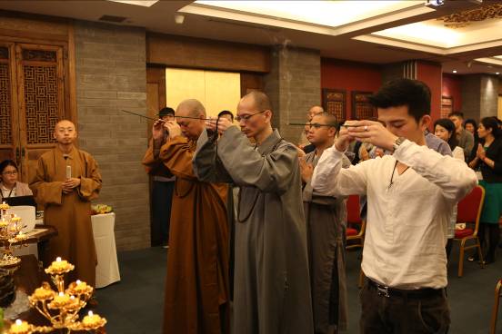 发布会现场更似佛门道场,沐手焚香、抄经论道、钟磬悠扬。宗舜法师、延参法师,《男士健康》杂志主编周松先生、佛教音乐人敬善媛均到场倾情助阵。