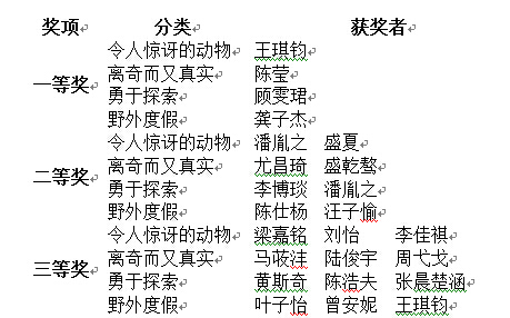 注:完整获奖名单请登陆官网www.ngkidschina.com下载并查阅。组委会将于近日通过邮件或电话的方式通知获奖人,请参赛者及时关注并回复。请不要以电话或电子邮件等方式询问。
