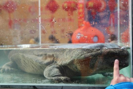 而在另一边的几个养鱼大缸里,也游动着不同大小的娃娃鱼,其中一条人工养殖上十年的巨型娃娃鱼更是引得人们驻足观看,围观市民纷纷拿起手机拍照。 (来自:腾讯大湘网)